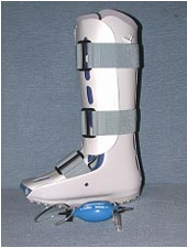 Aircast Walker støvlen immobiliserer ankelleddet og achillessenen, har fuld gænge, (kan være svær at bruge ved neuropati og/eller balanceproblemer). Der kan tilføres kompression ved hjælp af de indvendige oppustelige luftpuder, dog kun ved palpable fodpulse. Kræver forhøjelse af patientens anden sko. |