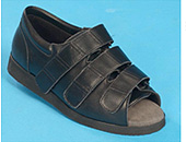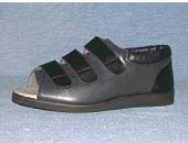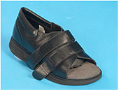 Terapisandalen er uden gænge og har udtagelig stødabsorberende sål. |