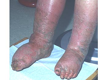 Elephantiasis, huden påvirkes så meget af lymfeophobningen i huden at den ændrer karakter til det man kalder elefanthud. Huden er fortykket, hård, nubret og fissureret. Der er grobund for infektioner og huden kræver mere soignereing og pleje. Lymfødem kan også udvikles på baggrund af erysipilas infektioner, som har en tendens til at recidivere.